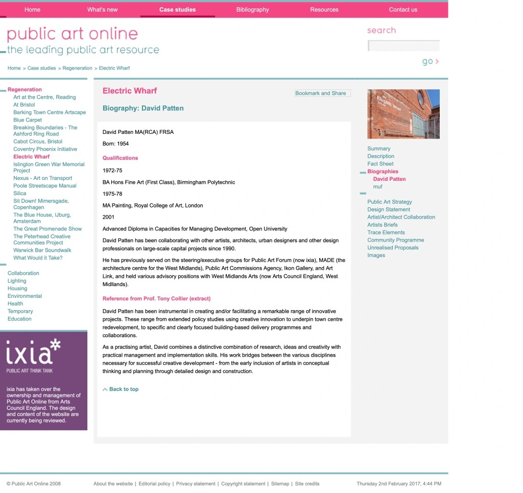 Visiting tutor to MA Urban Design ‘Art – Place – Landscape’ module, Birmingham City University