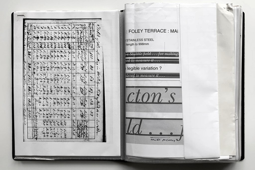 “Mr Acton’s Stubble field” | The text is the label, and the painting is all of the landscape ‘above’ it.