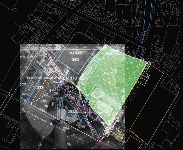 We stopped our talking and measured out where the wall had stood. An 8.75 metre arc chalked on the tarmac, locating something that had once stood over 6 metres high – obscuring the views up and down Mart Lane. And we understood, for the first time, the real scale and massing of what had been here.
