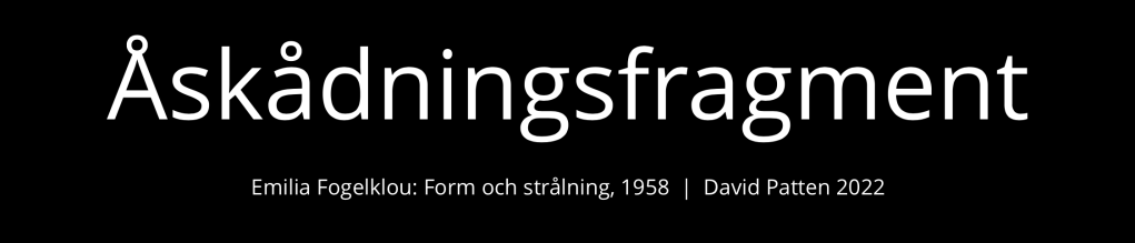 29. Åskådningsfragment Links: Åskådningsfragment 2022 Emilia Fogelklou | Working Space 2023 | see: https://davidpattenwork.com/fogelklou-back-up/ Share this: Click to share on X (Opens in new window) X Click to share on Facebook (Opens in new window) Facebook Like Loading...