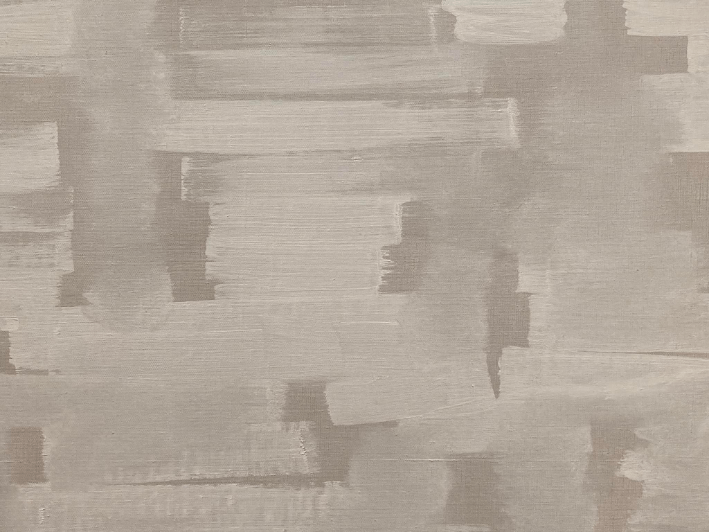 [Shiff: “…paint is allowed to be paint; its appearance isn’t of illusion, expression, or gesture, but merely traces the artist’s process of manufacture.”]
