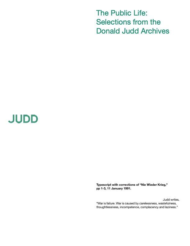 – Donald Judd: Notes, March to December 1992