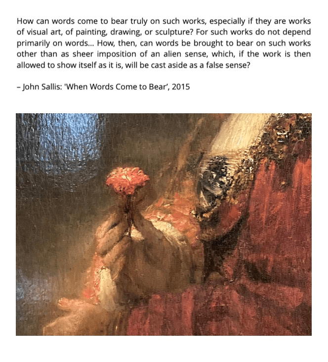 – John Sallis: ‘Transfigurements: On the True Sense of Art’, 15 November 2008