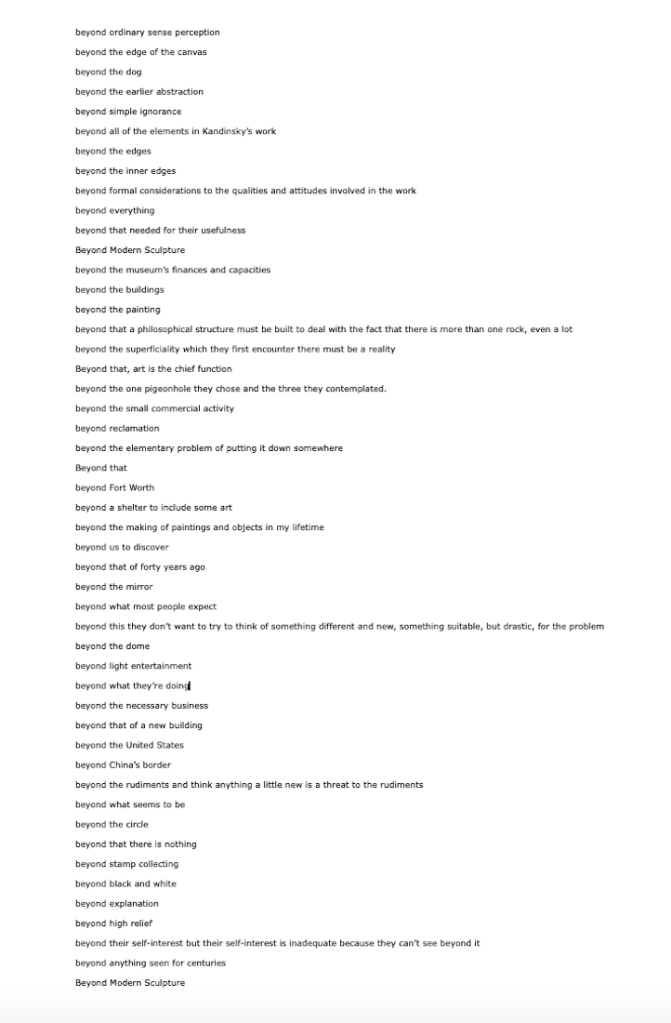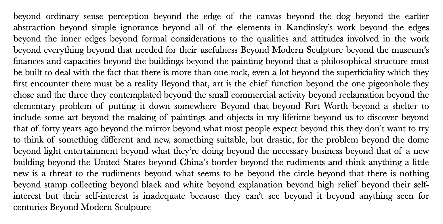 “If you don’t ask questions I’m going to keep talking but I’d rather know if any of you have anything to say, and I’ll try to show that there’s no basis for anything you can think or say, that there’s nothing you can say, about of art that is true. . . . And another thing, perhaps the last one I say – I’m always saying the last things – but… I’ve forgotten it.”