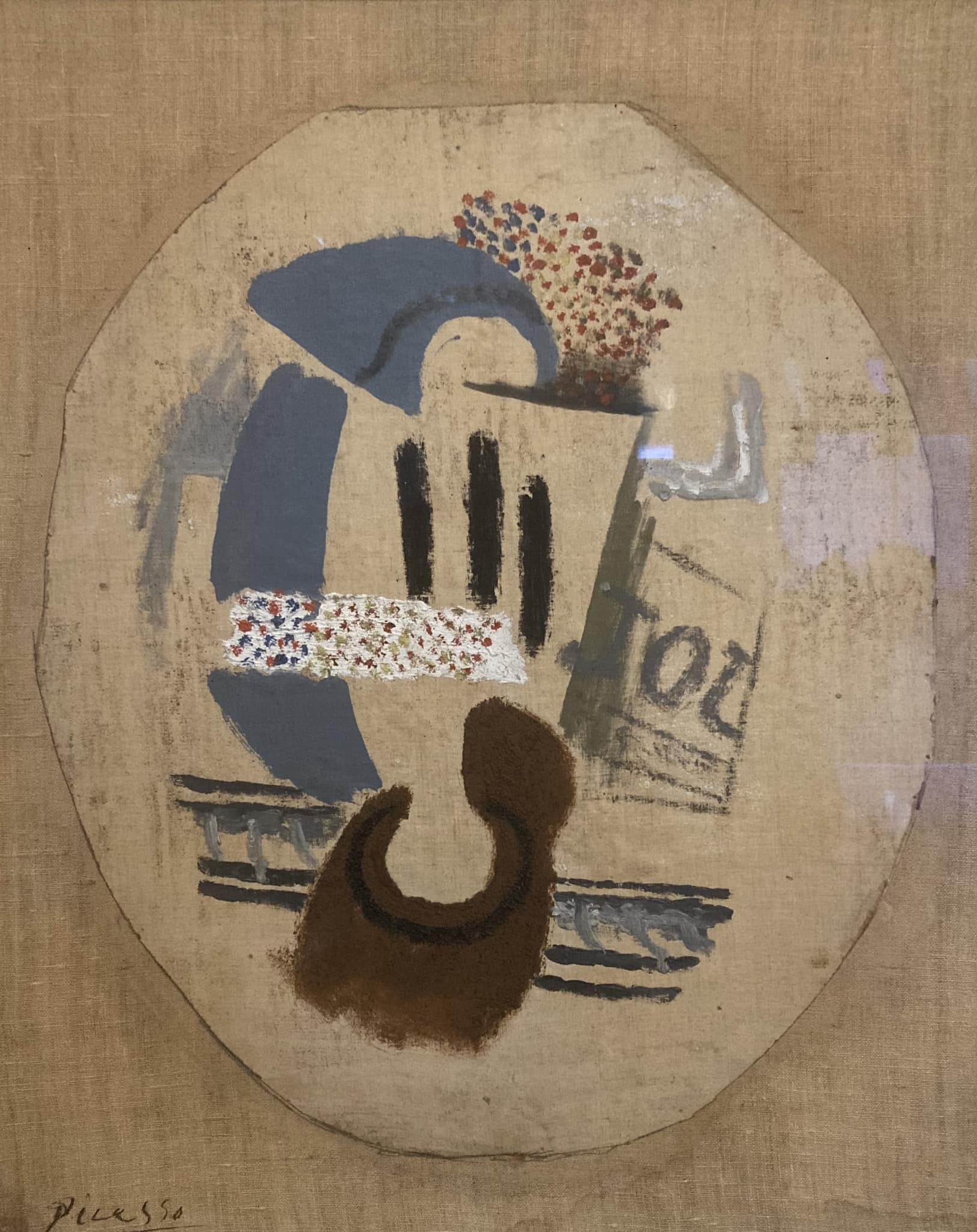 - Pablo Picasso: ‘Still Life (Wineglass and Newspaper)’ (Primary Title), ca. 1913-14, oil and sand on canvas, unframed: 20 1/2 × 19 7/8 in. (52.07 × 50.48 cm), T. Catesby Jones Collection, Virginia Museum of Fine Arts, Object Number: 47.10.83 | seen 3 October 2024