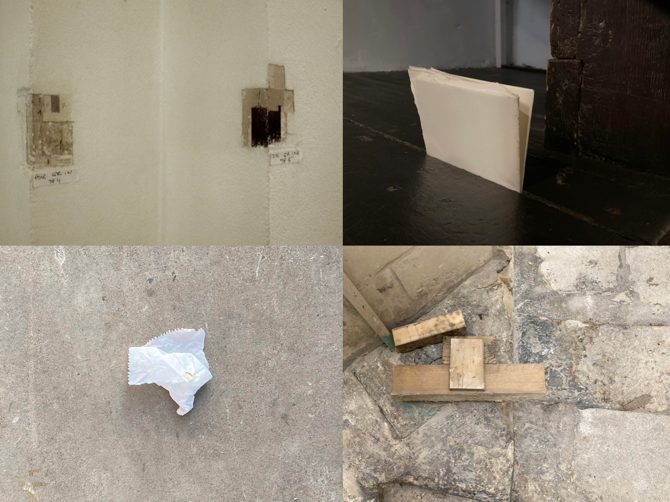 [Georges Braque 1914 / Plaut, 2021] / Hotel Roma / sculpture “made solely to be photographed”—an arrangement of “papery things and charcoal” affixed to the wall without the intention of permanence = temporal composition, an act of appearance destined to disappear / between presence and absence.