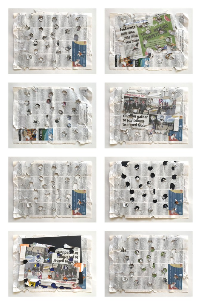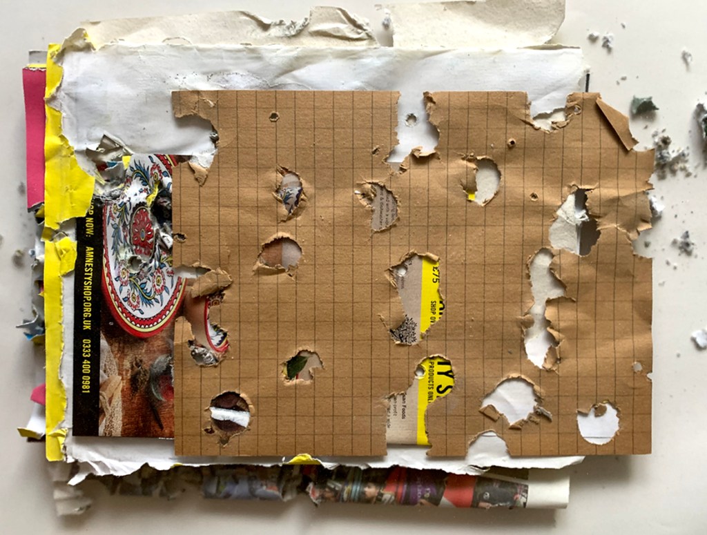 ‘Collage 03.11.2025’ as an enactive field in which material and awareness co-produce each other / surface as perceptual ecology / engagement without fixed meaning / the rhythm of attention + a cycle of anticipation and adjustment / the work “modulates its own sensory consequences” [Zhang et al, 2023] / it liberates itself as it appears [Guenther, 1975].