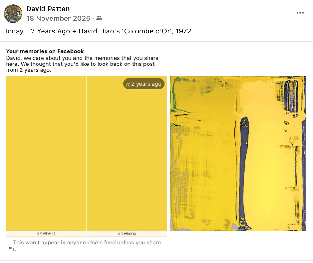 ‘Two Yellows’ (after ‘Colombe d’Or’, 1972), acrylic on support, March 2026.