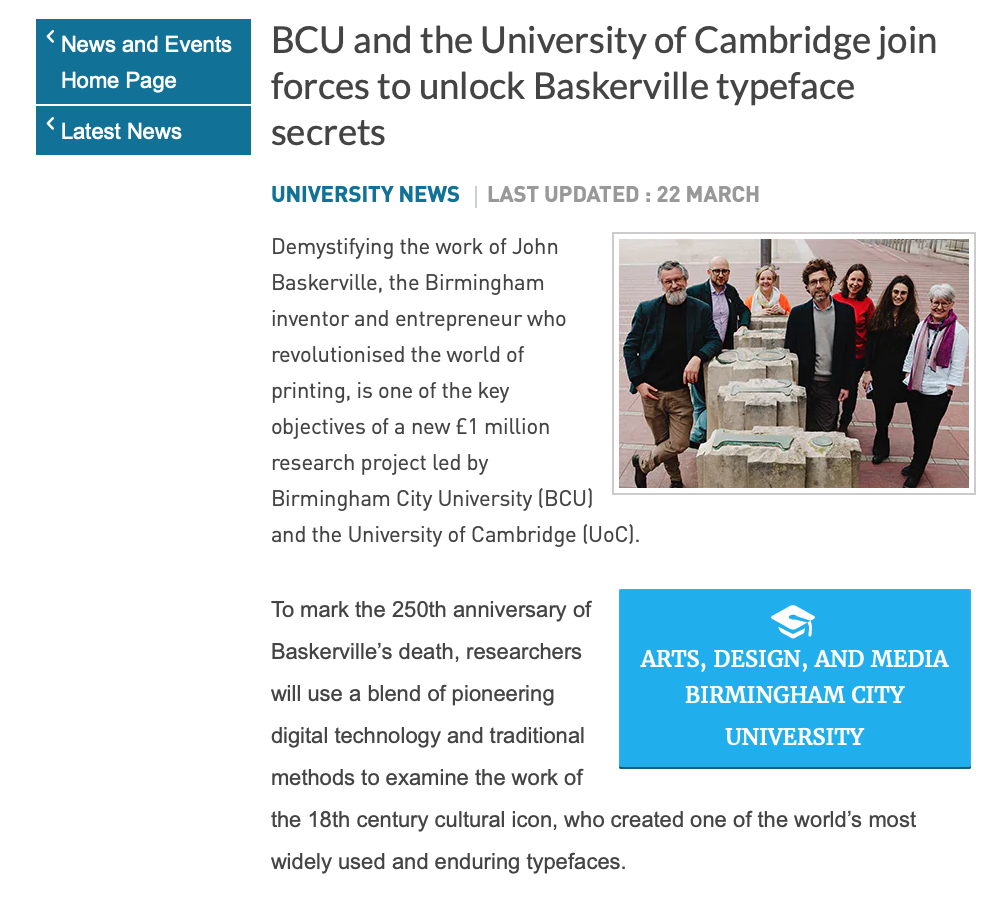 “Very much in Baskerville’s footsteps, we are disregarding disciplinary boundaries between art and craft, humanities and sciences. / Baskerville’s master punches are the only evidence we have of his workshop. Yet hidden within those punches are the clues to their manufacture.”