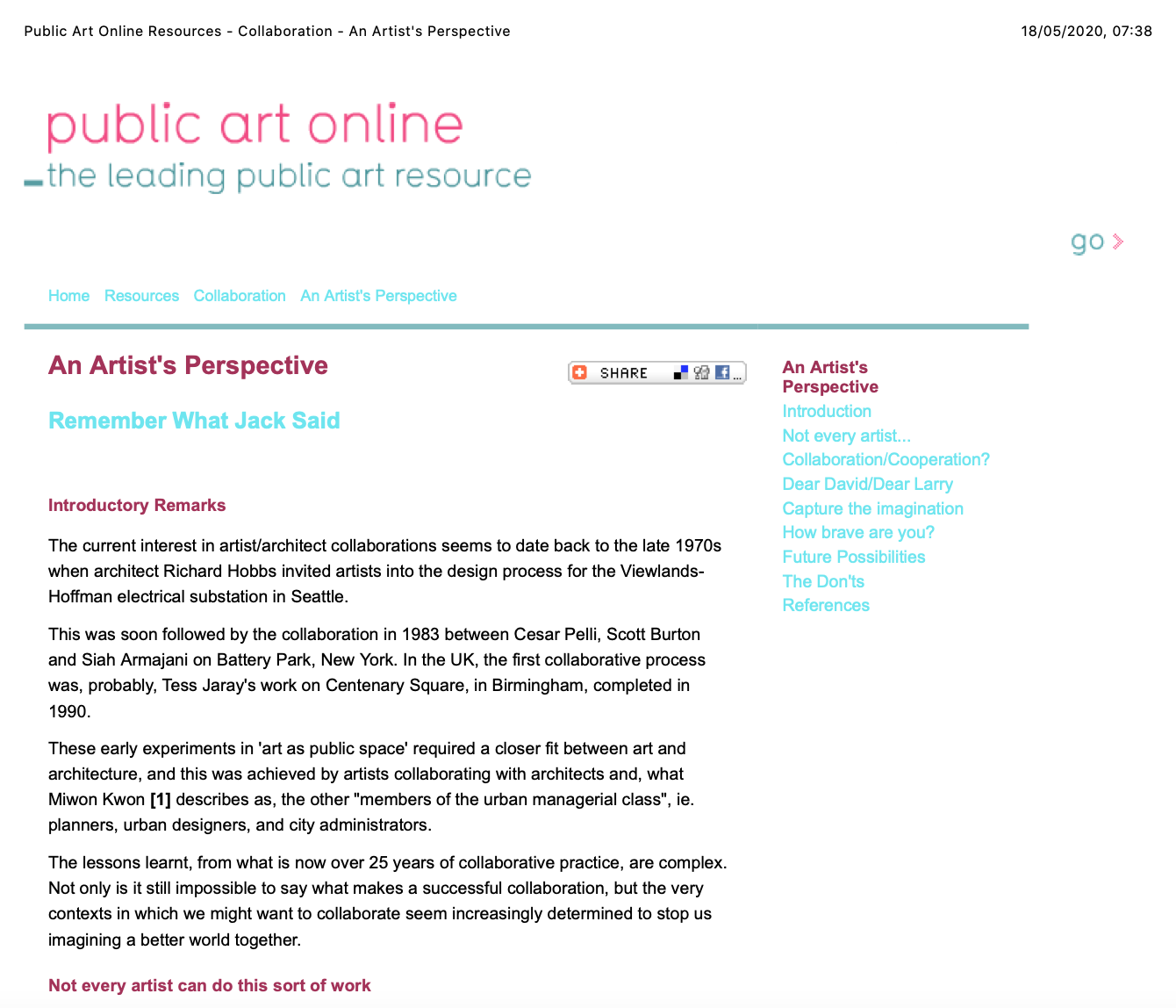 PDF: Public Art Online Resources – Collaboration – An Artist’s Perspective, 2004